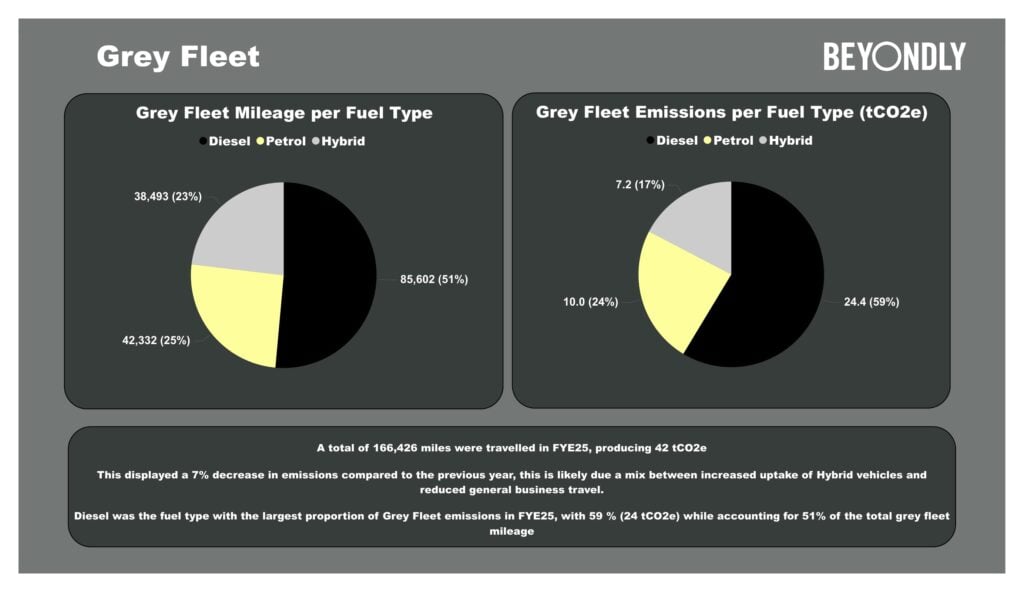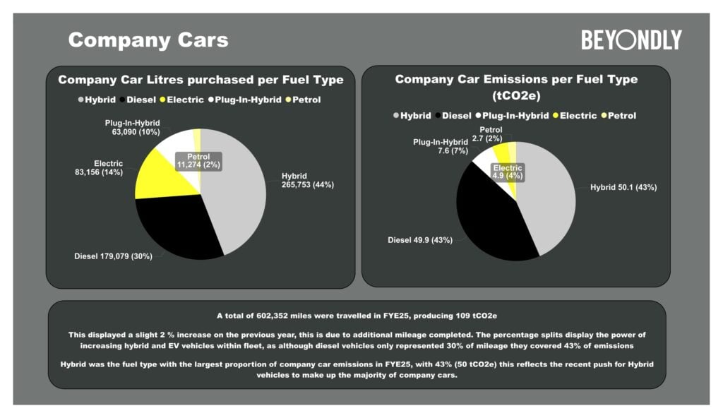 Transport remains the largest contributor to emissions, particularly HGVs and vans. During the year, Princebuild continued its transition to more efficient vehicles, including additional hybrid and electric company cars and the acquisition of modern Euro 6 vans, helping to reduce transport-related emissions.